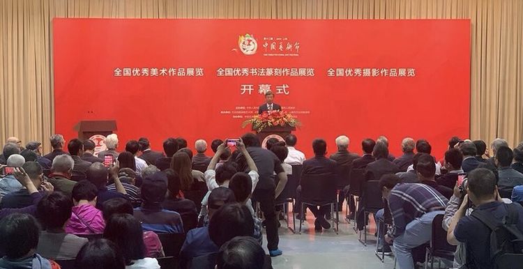据悉,全国优秀美术作品展是中国艺术节的一部分,中国艺术节是我国规格最高、最具影响力的国家级综合性文化艺术盛会。自1987年创办以来已成功举办了11届,推出了一大批精品力作和优秀人才,成为展示中国道路、中国精神、中国力量的艺术盛会,对推动社会主义文化繁荣发展、满足人民日益增长的精神文化需求发挥了重要作用。本届中国艺术节是第十二届,由文化和旅游部、上海市政府主办,以“逐梦新时代——向国庆献礼,向人民汇报”为主题,于5月20日在上海开幕。