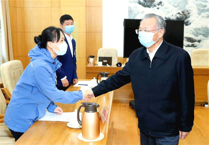 中共山东省委书记刘家义同周蕾握手交谈