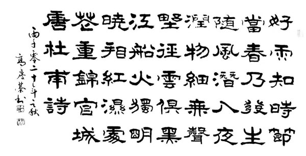 把字写好,是“座右铭”。高老常说,我只想把字写好,从来没想要成名成家。然而,人越是无求,其收获却喜出望外。已故着名书法家欧阳中石先生,曾盛赞过高老的书法,称其“是真用功夫了,不愧为古琅琊羲之故里人!”《高庆荣书法作品集》《高庆荣隶书千字文》分别于2006年、2013年由山东美术出版社、北京出版社出版发行,他的第三部书法集也正在筹备出版中。临沂的王羲之故居、孝河公园等,乃至全国百余处名胜古迹均保有其墨宝……成为书法名人的他,每每有人请教——如何“把字写好”时,总是语重心长的说:一笔一划地写,一个字一个字地练,写到上百遍上千遍的时候,自然会熟能生巧!